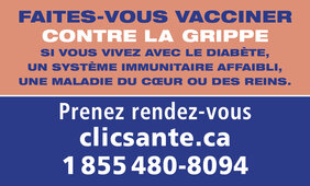 Mercredi | CommuniquéDès aujourd’hui, la population de Chaudière-Appalaches est invitée à prendre rendez-vous pour recevoir le vaccin contre la grippe.