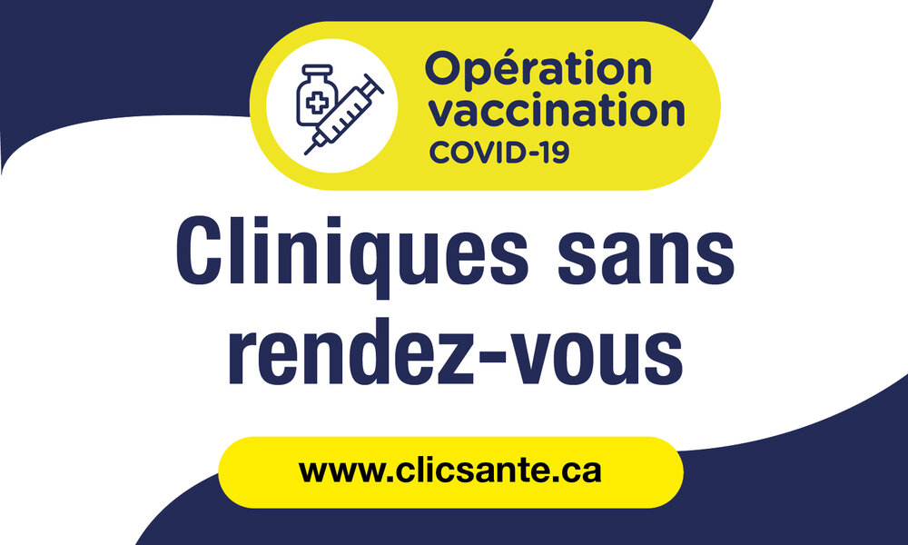 Vendredi | CommuniquéPour les prochains jours, plusieurs lieux de vaccination sans rendez-vous sont disponibles pour accueillir la population souhaitant obtenir leur 1re ou 2e dose (4 semaines d’intervalle à respecter entre la 1re et la 2e dose).