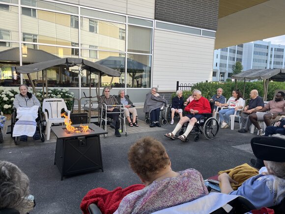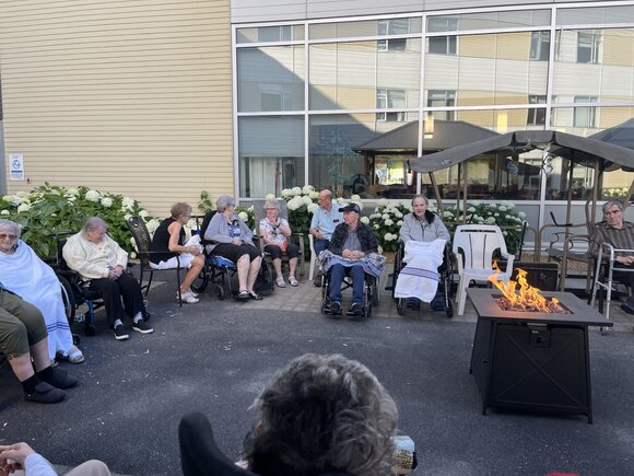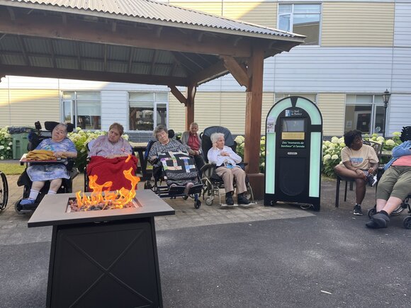 Cet été, nous avons fait un feu de camp dans le jardin. Nous avons réuni plusieurs résidents des trois étages au tour d'un feu avec de la musique provenant de notre juke-box. Croustilles et boissons gazeuses étaient aussi au rendez-vous. Les résidents ont bien aimé l'activité. Plusieurs ne voulaient plus partir ! Elle a aussi été appréciée par le personnel et les familles présentes. |