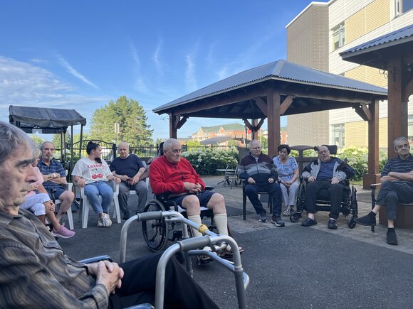 Malgré la mauvaise température durant le temps estival, nos résidents ont pu profiter de quelques activités extérieures. Avec l’aide des bénévoles, des familles et du personnel, plusieurs de nos résidents ont participé à la messe et au feu de camp de la Saint-Jean-Baptiste. Les deux activités se sont déroulées dans le jardin extérieur sous le beau soleil du mois de juin. C’est l’abbé André Châteauneuf accompagné de José Pereira, intervenant en soins spirituels, qui ont célébrer la messe de la Saint-Jean-Baptiste en plein air. Accompagnés par l’accordéoniste et notre chorale liturgique, la célébration extérieure fut très appréciée de nos résidents. Le lendemain, c’est un spectacle de musique et des saucisses grillées qui ont rassemblé nos résident et leurs familles pour souligner la Fête nationale. Arborant les couleurs du Québec, nos spectateurs ont chantés sur des airs bien connus de chez nous.