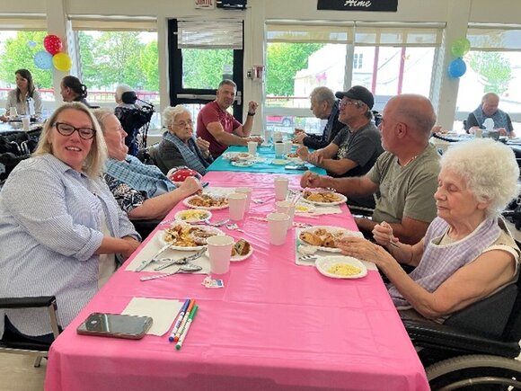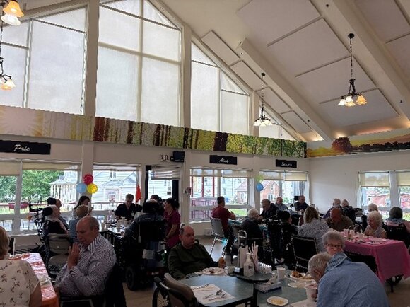 Quoi de mieux que de bruncher dehors l’été ! En juillet dernier, les résidents accompagnés de famille et de l’équipe de soins ont profité d’un bon brunch à l’extérieur.