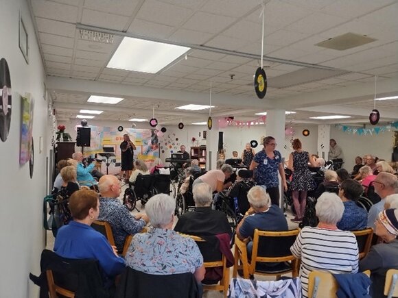 Le 12 mai dernier, l’équipe du CHSLD a souligné la fête des Mères avec les résidents et leurs proches. Toutes les personnes présentes ont pu profiter d’un spectacle musical et d’une collation frugale. Pendant l’évènement, nous avons pu observer de la bonne humeur, des sourires et de l’amour. Ce fut une belle journée.  |