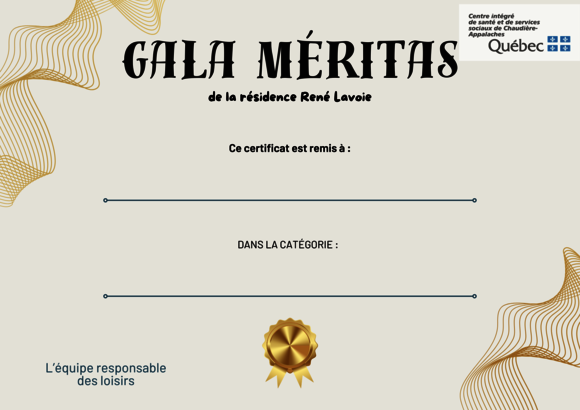 Un gala méritas a été organisé pour souligner et célébrer une force, un talent ou une belle qualité des résidents et résidentes. Un diplôme a été remis à chaque personne ainsi qu’une photo prise dans un décor festif (photobooth) pour garder un souvenir de ce beau moment. Nous avons profité de l’occasion pour offrir une collation spéciale aux participants et aux familles : une tarte aux pommes maison préparée par nos résidents et résidentes la veille du gala. |
