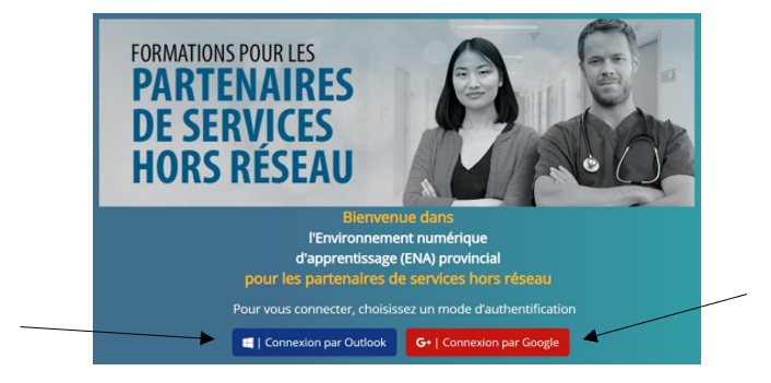 Pour accéder à l'ENA, une adresse courriel est requise. Sur la page d’accueil, cliquez sur :