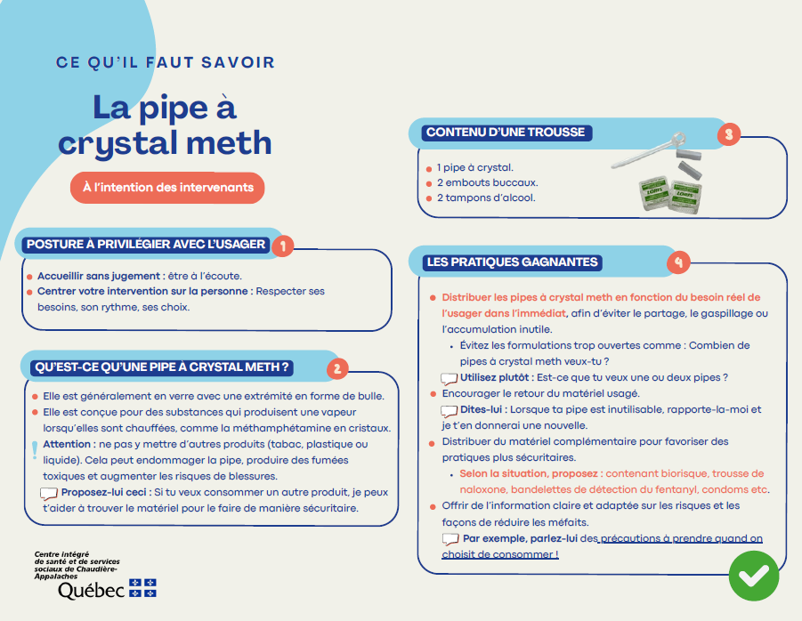 Les pharmacies, les CLSC, les hôpitaux et les organismes communautaires faisant partie du programme CAMI (Centre d’accès à du matériel d’injection) sont des endroits où les personnes qui consomment des drogues peuvent se procurer du matériel d’injection de façon gratuite et anonyme. La distribution de matériel d’injection neuf aux personnes qui consomment des drogues les aide à adopter des comportements plus sécuritaires. Ces personnes diminuent ainsi leur risque d’acquérir ou de transmettre des ITSS (VIH, hépatites B et C). La distribution de matériel d’injection neuf aux personnes qui consomment des drogues les aide à adopter des comportements plus sécuritaires. Ces personnes diminuent ainsi leur risque d’acquérir ou de transmettre des ITSS (VIH, hépatites B et C).