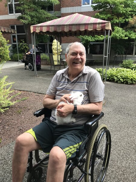 La présence des lapins est grandement appréciée des résidents et elle leur procure des moments de douceur et de plaisir. Les moments passés en leur compagnie sont bénéfiques pour certains résidents et favorisent la diminution des comportements dérangeants.