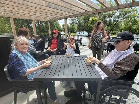 Les résidents ont pu profiter d’un bon dîner en plein air, socialiser, chanter et apprécier la senteur de la cuisson des hot-dogs faits à l’extérieur !